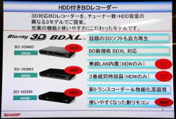 シャープ(株)は、Blu-ray 3D再生やBDXLに対応しながら低価格化を図ったBDレコーダー3機種を10月20日から順次発売する。