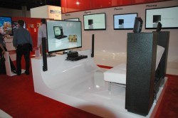 韓国発の大手ブランドLGは、3D対応の液晶テレビ、プラズマテレビ、プロジェクター、ブルーレイプレーヤーと、3D対応製品をフルラインナップで紹介した。