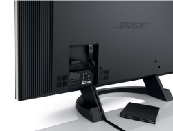 「Bose VideoWave Entertainment System」は、46型のスピーカー内蔵ディスプレイとメディアコンソールのセット。ディスプレイ筐体上部に7個のスピーカー(左右各3個、センター1個)を搭載。さらに独自の低音再生技術ウェーブガイドテクノロジーとウーファー6個を内蔵することで、外部サブウーファーなどがなくても豊かな低音を実現すると訴求している。また、「ADAPTiQ」により、設置場所に合わせた音場調整が可能だ。