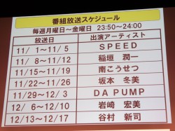 本日行われた合同記者会見には、(株)ビーエス朝日の代表取締役・風間建治氏、(株)プロデュース&ディレクションのプロデューサー・疋田拓氏、パナソニック(株)のデジタルAVCマーケティング本部本部長・西口史郎氏のほか、番組出演アーティスト・稲垣潤一氏が登壇。11月からの放送スケジュールも公開された。