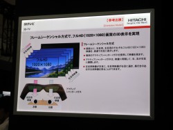 日立コンシューマエレクトロニクスでは、かねてから2010年度内の3Dテレビ投入をアナウンスしていたが、その言葉を裏付けるように、3D対応の液晶テレビがCEATECの日立ブースに参考出展されていた。