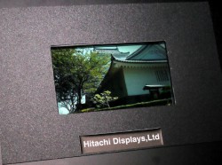 もう一つ展示されていたのは、視差バリア方式の3D液晶。日立ディスプレイズが4月に発表したもので、映像表示パネルだけでなく視差バリアにもIPSを採用しているのが特徴。また液晶駆動用の電極構造も工夫し、片方の目に映像が見えている時にも、もう一方の目に映像がごく薄く見えるようにしたという。これによりクロストークを低減し、3D視聴時の疲労感を軽減できる。展示されていたのは4.2インチと3.1インチの2サイズ。