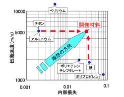 振動板はスピーカーの音質を左右する重要なパーツ。低音から高音に至る複雑な振動を正確に伝達する伝搬速度と、共有音や固有音を発しない適度な内部損失が求められる。高音用スピーカー振動板に使用されるチタンやアルミニウムなど金属系素材は、伝搬速度が高いが内部損失は小さい。一方紙やポリプロピレンなどの素材は、適度な内部損失はあるものの伝搬速度が低かった。