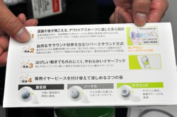 また、12月中の発売を予定するスポーツイヤホンの新モデル「TH-SB23YG」も登場している。こちらは音がダイレクトに鼓膜を刺激しない「リバースサウンド」方式を採用し耳に優しいリスニングを行えるほか、重低音/ノーマル/サラウンドなど求める音の傾向に合わせて付け替えられる3種類のイヤーピースが付属するのが特徴。価格は未定だが、1,980円前後での販売を見込んでいるとのことだ。