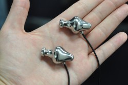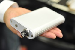 さらに、来年初頭を目処に発売を予定している、開発中のヘッドホンアンプも披露された。外観はあくまで試作品だが、発売時はiPhoneよりも小さい筐体にすることを予定しているという。ファイナルオーディオデザインは金属削り出し筐体の「20万円イヤホン」で多くのオーディオファイルの度肝を抜いたためイヤホンのイメージが強いが、ステンレススピーカーやアナログターンテープルなど、ピュアオーディオ製品の開発にも実績を持っている。このヘッドホンアンプにはその技術が生かされているとのこと。価格については未定だが、かなり高価になるかもしれないという話だった。