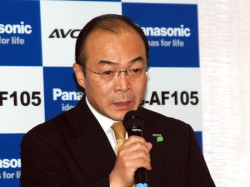説明会ではまずパナソニック(株)AVCネットワークス社システムAVビジネスユニット ビジネスユニット長の下水流正雄氏が登壇。3D対応のカムコーダー「AG-3DA1」や同じく3D対応の液晶モニター「BT-3DL2550」などを挙げ、3Dソリューションをエンド・トゥ・エンドで展開していることなどを改めて紹介しながら、市場動向などを説明した。
