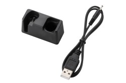 電源にはリチウムポリマー充電池を採用。音楽は約4時間、通話は約4.5時間、待ち受けは最大90時間の連続使用が可能だ。充電はUSB経由で行うが、携帯電話向け/DAP向けモデルにはUSB-ACアダプターも付属しているので、家庭用コンセントでも充電可能だ。さらに、充電用クレードルも付属している。