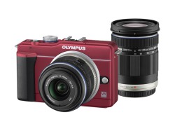 E-PL1からの変更点としては上記同梱レンズを変更したほか、ISO6400の高感度撮影に対応。カラーバリエーションも、ホワイト、レッド、ブラックの3色とし、ボディー側面の枠をボディーカラーと同色にした。