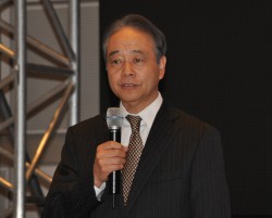 はじめにヒビノの代表取締役副社長である野牧幸雄氏が挨拶を行った。同社の基幹事業には、国内で開催される年間2千数百本のライブやコンサートに音響システムの企画立案・提供などを通じてサポートを行う「サウンド・ディビジョン」、グローバルに業務用の音響・映像機器を販売、システムの設計・施工を行う「プロオーディオセールス・ディビジョン」のほか、LEDディスプレイの企画開発、製造・販売を行う「クロマテック・ディビジョン」がある。「ユーザーの皆様からいただく製品に対するご意見や感想を、当社のものづくりの事業部が吸い上げ、製品化に反映させてユーザーへお届けするという流れが確立している。当社の製品は現場で鍛え上げられて、ブラッシュアップされながら進化してきた。現在は多種多様な音響・映像のフィールドへハイレベルなソリューションをご提案している」と野牧氏はアピール。LEDディスプレイの事業展開については、「当社の強みであるB to B市場をメインターゲットに、LEDの特長を活かした使い勝手の良さをご提案していきたい。高品位な3D映像をお届けして、新たなエンターテインメントをパートナーであるビクターと創出していきたい」と意気込みを述べた。