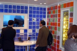 さらに、映像も電力もワイヤレス化した上でさらなる薄型化も果たした“Mirai-Display”や、光ディスクの廃材をリサイクルするという壁材タイル型の蓄電池などのデザインコンセプトも参考出展し、それらの製品を使用して省エネを実現した未来の部屋を展開していた。