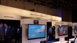 先ずは、3D関連の話をまとめていこう。昨年の会場の様子と比較すると、3Dの進展には製品分野ごとの温度差がそれなりにある。まず、薄型テレビは、“メガネ付き”の3Dテレビはあって当然のものとなり、ブース内で特別にハイライトされている感は少ない。3Dは技術そのものというよりは、放送などコンテンツとの関わりをアピールする方向にシフトしている。