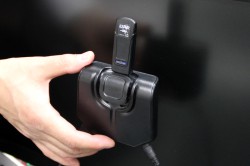 UWBは伝送速度最大480Mbps(理論値)で、容量の大きいデータでもスムーズな伝送が可能とのこと。また消費電力が少ないことや、無線LANと帯域が重ならないこともポイントで、同社説明員は「無線LANでネットに接続したPCで動画を見つつ、その動画をテレビに無線伝送する、という使い方をしても互いに干渉せず快適に利用できる」と語った。
