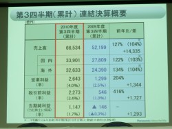 パナソニック、2010年度3Q連結業績決算を発表 − 純利益が黒字転換し1147億円を計上