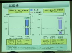 また、2011年4月に株式交換によって完全子会社化する予定の三洋電機の売上高は1兆2,230億円となった。太陽電池、車載機器、電子部品は堅調に推移したが、デジタルカメラ、二次電池などは需要が低下したことに伴い、売上は低調だったとしている。なお、営業利益は買収に伴い計上された無形固定資産の償却費等を含めて4億円となった。