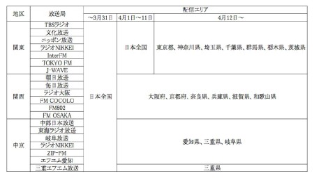 4月1日からは関東7局のみ日本全国で聴取可能となり、関西6局と中京7局はエリア内でのみ聴取ができる平常運営に戻る。その後、4月12日からは関東7局についても、エリア制限がかかった平常運営を再開する。