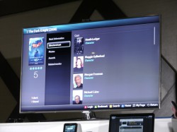 スマートTVのデモンストレーションでは、テレビ専用アプリをベースに快適な操作性を提供するプラットフォーム「SMART HUB」が、フラグシップ液晶テレビ「9000シリーズ」を使って紹介された。本機はDLNAに対応しており、同社製のBDレコーダーやWiFi対応カメラ、スマートフォンやタブレット端末と連携させることができる。デモではSMART HUBの特徴である検索UI「All Share」も紹介され、テレビに接続したBDレコーダーや外付USB-HDDなどに保存されたコンテンツをはじめ、インターネットからキーワード検索でヒットしたYouTube動画、Facebookの関連ページなどを一覧表示し、様々な関連情報にアクセスできることをアピールした。