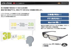 3D映像の解像度ではアクティブ型に軍配が上がるが、反面、クロストークの少なさやフリッカーの少なさなどではパッシブ型の方が有利で、長時間の視聴でも疲れにくい。またパッシブ型3Dメガネは電池が不要で、軽量であることも特徴。ZP2シリーズには“レグザシアターグラス”「FPT-P200」が1個同梱されており、質量は約20gとなっている。