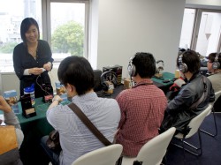 そのほか、コンデンサー型ヘッドホンシステム「SRS-005S」(関連ニュース)なども展示。ヘッドホン「SR-003」の形状もあいまって、スタッフへ熱心に質問する来場者の姿が多かった。