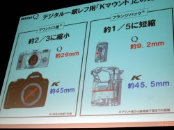 Qマウントでは、フランジバックを同社のKシリーズ比で約1/5の約9.2mmへと短縮。レンズのイメージサークルを小型のイメージセンサーに特化したことで、マウント口径を同じくKマウント比で約2/3の約29mmへと縮小した。