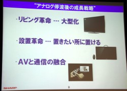 山田氏はまた「7月24日以降の薄型テレビ市場は、デジタルからデジタルへの買い替えへの市場へと完全に移行する。こういった中でシャープとしては、買い替え・置き換え需要への提案を強化していく」と説明した。