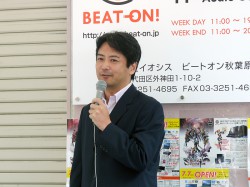 また開店前にはオンキヨーエンターテイメントテクノロジー(株)の大朏時久社長も登場。「秋葉原のBEAT-ONから新しい音楽スタイルを発信するという気概で頑張ってほしい」と激励した。