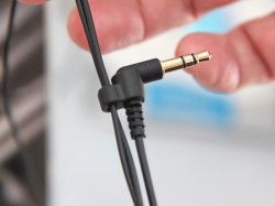 本体質量は15g。ケーブル長は1.2mで、さらに2m延長ケーブルが付属するほか、特許出願中だという絡まり防止ホルダーも付属する。端子は金メッキ処理を施したL型3.5mmステレオミニで、6.3mm変換プラグも付属する。