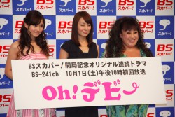 会見にはオリジナル連続ドラマ『Oh! デビー』に出演する矢田亜希子さん、森公美子さん、笹本玲奈さんらが出席し、ドラマの内容について説明した。スカパー!がドラマを制作するのは今回が初めてだが、「自信を持ってお届けできるエンターテイメントになっている」と、スカパーJSAT(株)編成部長の国武慎也氏も力強く宣言した。