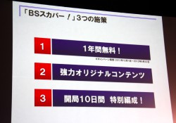 こういった状況の中開局するBSスカパー!に対し、高田社長はスカパー!サービス全体のショーケースとしての機能を大きく期待していると説明。「BSデジタル放送の受信可能世帯は約2,200万で、110度CS受信可能世帯は約900万。この差分である約1,300万世帯にスカパー!サービスを流通させることが我々のミッション」と説明した。「BSスカパー! で採算を合わせなくてはならないとは考えていない」という。