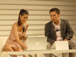 続いて会場には、海外生活中に米国でHuluを楽しんでいたというモデル・森泉さんが登場。Huluの日本法人であるフールー・ジャパンのプロダクト マネージメント部部長・田邊泰之氏の解説を交えながら、森さんが日本版Huluを体験するデモが行われた。