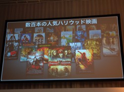 なお、日本でのサービス開始に併せ、CBS、NBC、ユニバーサル、ソニーピクチャーズ、20世紀フォックス、ディズニー、ワーナーなどとライセンス契約を締結。配信作品は、映画『パイレーツ・オブ・カリビアン』『アルマゲドン』や、ドラマ『24』『デスパレートな妻たち』など様々なコンテンツを用意しているが、現在の配信数については「数千本の海外ドラマと数百本の人気ハリウッド作品」と発表。さらに今後は、日本を含めたアジアのドラマや映画コンテンツも追加して拡大していくという。