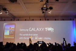 まず注目したいのは、日本でも発売されている「GALAXY Tab」の後継機にあたる「GALAXY Tab 7.7」だ。タブレット製品として世界で初めて、7.7型のスーパー有機ELモニターを搭載し、本体サイズは最薄部で7.8mm、質量は335gと軽量化も図っている。