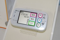 本体に歩数計機能を搭載する見守り歩数計「Mi-Look」は、京セラ製3G携帯電話のシンプルモデル。想定ユーザーは70〜80代のシニア層で、該当層の親を持つ子供が購入することを見込んでいる。本体は防水対応。