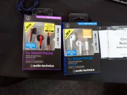 オーディオテクニカは、日本でもおなじみの製品を改めて紹介。コンパクトに折りたためるポータブルヘッドホン「ATH-FC707」などを試聴できるようにしていたり、スマートフォン対応イヤホン「ATH-C505iS」や「ATH-C505XP」を紹介するなどしていた。