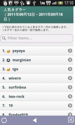 この詳細画面には左上に「ツイートする」ボタンが設けられており、タップすると自分のTwitterアカウントから「RZランキング」内で参照しているタグリストの詳細情報をツイートできる。またページ上にはAndroidマーケットやAppStoreの「RZタグラー」アプリのダウンロードページへのリンクも用意されており、アプリに興味を持ったらリンクを辿ってすぐにダウンロードが行えるようになっている。