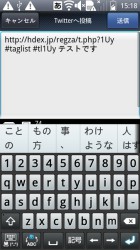 「RZタグラー」のユーザーは、タグリストを作成したのち、投稿する際にTwitterで告知することも可能だ。タグリストを公開する際、「このリストを公開」するボタンをタップすると、そのタグリストをツイートするか尋ねられる。ツイートを選択すると、アプリ上で「Twitterに投稿」するための入力画面が立ち上がり、詳細情報のURLとハッシュタグ「#taglist」を自動で埋め込んだツイートが行える。