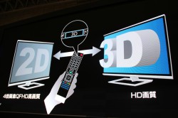 なお、2Dー3D変換機能も搭載。被写体の動き/画面の構図/顔検出による3つの奥行き推定によりリアルタイム映像処理を行うことで、2D映像を自然な3D映像に変換することができるという。