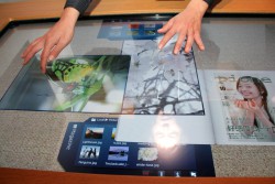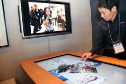 続いてブースで多くの注目を集めていたのは、52V型のタッチパネル液晶を搭載し様々な情報・コンテンツを表示/編集できる“コミュニケーションテーブル”だ。