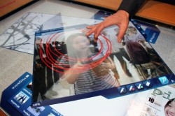 こちらは電子書籍や写真、動画などの表示したデータをカード(紙)のように指先で操作できるのが特徴。回転や移動はもちろん、マルチタッチにも対応しており拡大や縮小も可能。データをテレビなどのモニターに向かってスッと投げると、そちらに表示されるなど、直感的な操作ができるのが特徴だ。