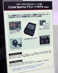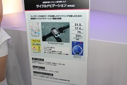 アスリート向けの高機能「サイクルコンピューター・ペタリングモニタセンサー」と、一般サイクリスト向けの、自転車で街を散策する“ポタリング”を楽しむためのGPS センサーと地図データを搭載した「サイクルナビゲーション」を提案している。
