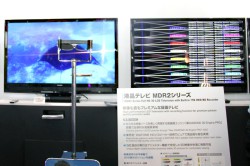 本製品は赤色レーザーと、青色LEDに緑色の蛍光体を組み合わせて発光させるシアン色LEDバックライトを採用し、鮮やかな色と高輝度を実現しているのが特徴。白色LED液晶テレビの約1.3倍の広色域を実現しているという。また、独自のカラーマネージメント技術によって、彩度の高い原色と自然な色再現を両立させた、とアピールしている。同社説明員は「RGB全てにレーザーバックライトを使用するとコスト面の問題が発生する。Rのみレーザーバックライトとすることでも、G、Bのバランスが持ち上げられて高い色再現性が実現できる」と説明していた。本製品の実用化は「できるのならばすぐにでもしたいが、現在価格面などで調整を行っているところだ」とのことだ。