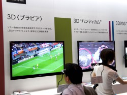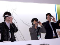 新製品では、ヘッドマウントディスプレイ「HMZ-T1」や、3D/2DのフルHD動画撮影が可能な電子双眼鏡「DEV-3」のデモ機も多数用意。こちらにも多くの来場者が順番待ちの列を作っていた。