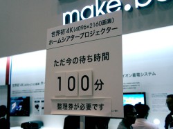 「VPL-VW1000ES」のシアタールームでは、フルHDのBDソフトを4Kにアップコンバートした映像や、ネイティブ4K映像などの異なるソースで同製品を120インチのスクリーンで体験可能。やはり注目度は抜群に高いようで、記者が訪れた時点では100分待ちという事態になっていた。