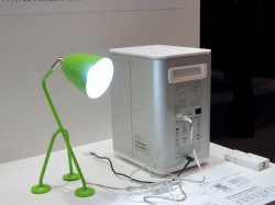 発売前の新製品では、そのほかに“VAIO”を裸眼3D対応にするレンチキュラーパネルなども用意。ACアダプター経由で充電しておいた電気を、AV家電の駆動や携帯電話の充電のために使用できる蓄電池“ホームエネルギーサーバー”も展示している。