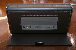 「SoundLink Wireless Mobile speaker」は、「ちょっとした辞書と同じくらいの大きさ」(同社説明員)というとおり、持ち運びに困らずビジネスバッグやトランクに入れやすいサイズ(ただし質量1.3kgなので手に持つとややずっしりした印象を受けた)。保護カバーがスタンドになるというのも、デザイン・実用両面でメリットがあり、スマートなスタイルだと感じる。出張や旅行の際にもお気に入りの音楽を良い音で楽しみたいという方にはかなり重宝する製品ではないだろうか。