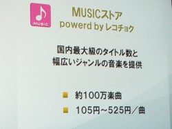 「MUSICストア」は、約100万曲の楽曲を揃える音楽配信サービスで、利用料金は1曲につき105円〜525円。配信楽曲のフォーマットはAACとなる予定。