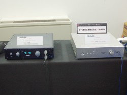 こちらも今回がヘッドフォン祭初出展となるバクーンプロダクツは、ヘッドホン出力を備えるパワーアンプ「SCA-7511MK3」「SCA-7512」と、プリアンプ「PRE-7610mk3」の計3機種を披露した。いずれも11月1日発売を予定している。3機種とも本体サイズは同一で、235W×78H×295Dmm。