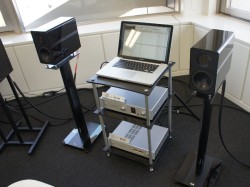 また、ヘッドホンだけでなくスピーカーをつないでの試聴システムも用意。スピーカーを通して「DA-200」「M-200」の音を確認できるようにもなっている。