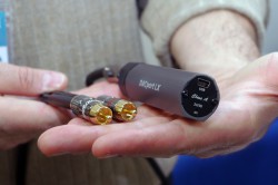 こちらは両端がUSB - USBタイプのものと、USB- iPod Dockコネクタのものの2種類を用意。ケーブルと機器の間に挟んで使用する。本機に搭載されたフィルターが、伝送時にDACに与えるノイズを除去してくれるという。USB- iPod Dockコネクタタイプは11月20日頃の発売を予定。予価は25,000円だが「発売時にはもう少し安くなる可能性もある」(同社説明員)とのことだ。