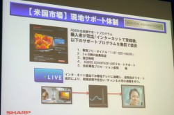 また、AQUOS会員制製品サポートサービス「AQUOS ADVANTAGE」も好評とアピール。これはインターネット経由でユーザーのテレビに接続し、説明員がリモート操作で故障診断や色合い/チャンネル等の調整を行うで、無償で利用できる。「最近スタートしたサービスだが、非常に好評で既に58万ユーザーほどにご登録いただいている。こういったサービス自体も製品の販促として有効だと考えている」(高橋氏)。