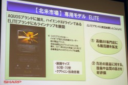 また、パイオニアのライセンスを受けて製造している北米市場専用ハイエンドモデル“ELITE”ブランドが好評で、シャープのブランドイメージ向上の一翼を担っているという。